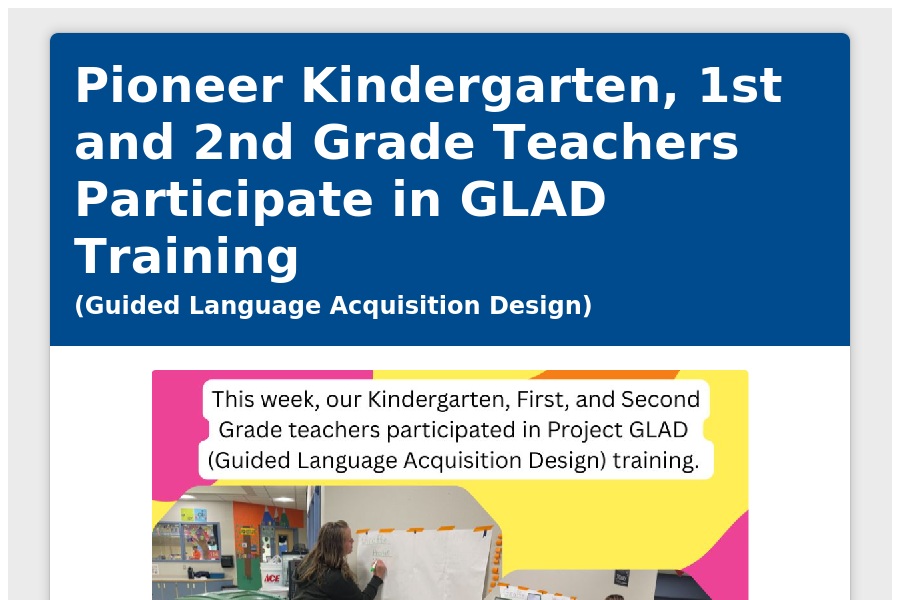 Pioneer Kindergarten, 1st and 2nd Grade Teachers Participate in GLAD Training (Guided Language Acquisition Design)